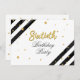 サプライズ60モダンth誕生日スクリプト招待状は、簡単に編集できるスクリプトタイポグラフィと黒いストライプグリッターと金ゴールドフォイルのドットを特徴とする。さらにカスタマイクリックズを行う場合はカスタマイズ、「IT」ボタンをクリックし、このテンプレートを変更するために当社のデザインツールを使用する。