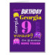 9th birthday name birthday girlsブロックパーソナライズされたグラフィックエイリアン電子ゲームスタイルカード。ピクセ熱狂するルグラフィックのモンスターエイリアンと、ピンク、白、紫、黄色の自分の名前と年齢。あなたの子供の名前でパーソナライズ現読在グルジア9連絡、他の名前の長さと年齢が利用可能なもしあなたが助けを必要として私は、幸せにあなたの名前のための一つを投稿する。ギフトのラップやその他のアイテムにも対応。アートとデザイン: www.mylittleeden.com