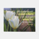 柔らかい白と黄色のチューリップの写真と箴言31:25、彼女は強さと尊厳を着て服を着て、彼女は未来を恐れずに笑う。