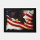 この歓迎ドアマットに着陸するハゲのワシを持つ愛国的な米国国旗。