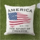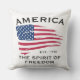 赤、白と青のアメリカの国旗のパターンのデザインとアメリカのおもしろい愛国的なポーチのロッキング椅子のクッション自由の精神EST. 1776クラシックタイポグラフィのレタリングの文字。