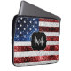 米国国旗の赤白青スパークルグリッターモノグラム ラップトップスリーブ
