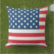 愛国的なホームアクセントピローは、赤、白、および海軍の青の色で星とストライプを持つアメリカの旗のデザインを特徴とする。