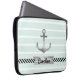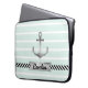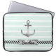 真新しい緑及び白くストライプのな背景の灰色の水彩画のいかりが付いているクールなラップトップスリーブ。 またいかりの下でカスタムな文字とのデザインを個人化できます。