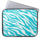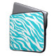 粋なティール(緑がかった色)の白いシマウマのストライプの野生のアニマルプリント ラップトップスリーブ