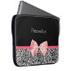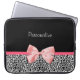 粋な白黒ヒョウのプリントのピンクのリボン ラップトップスリーブ