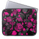 私達のシックで及びスタイリッシュな黒く、ピンクの花柄ばら色コンピュータラップトップスリーブカバーとのスタイルのあなたのコンピュータを保護して下さい。 私達をこのスタイルのより多くの色選択のためのwww.celebrateitgifts.comおよびデザインの大きい類別訪問して下さい