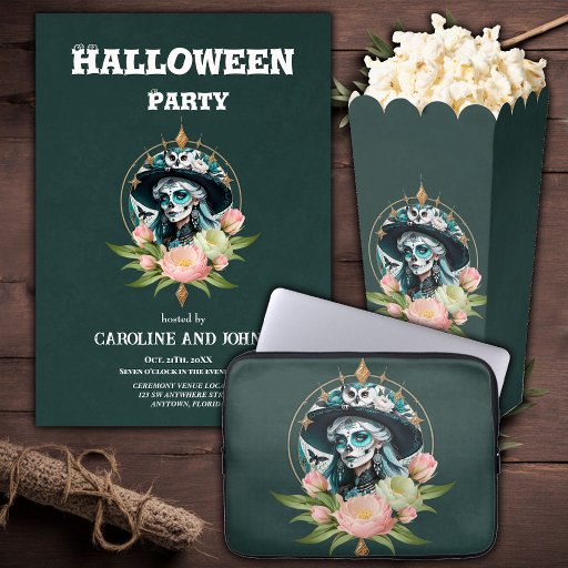 砂糖素晴らしスカルのメ素晴らしークで飾られた女性。明るい色と複雑なパターンは生と死の物語を物語与えり、彼女の陽気でありながら敬意を払った表情はディ・デ・ロス・ミュートスに最適である。彼女の長く流れる髪は、色の滝のように彼女の肩に流れる鮮やかなターコイズを輝かせる。それは光をキャッチし、デザインのフェスティバルムードを高める。深いの青と緑の背景は夜空を彷彿とさせ、繊細なピンクと白の花は彼女を踊のまわりにる。これらのフローラのアクセントは、色を加えるだけでなく、死者の愛と思い出を象徴する。