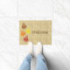 ようこそ友人と秋このカラフル秋のメープルを特色にした錆びたドー葉マット。メッセージを文字に変更できる。