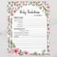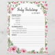 紙シートと赤ちゃんシャワーのためのゲーム"ベビー予測とアドバイス"。ゲーム紙シート飾は愛らしい水色のバラを備えている。