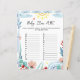 赤ちゃんシャワーゲーム"ベビーアイテムABC"。各文字から始まる子ども向け物は?ベビーシャワーゲーム紙は、柔らかいパステルエメラルドと青の葉イラスト、枝、虹と柔らかいピンクの花を持つ植物の愛らしい水色のを備えている。