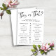 紙ゲームを知っている人はこれまたはブライダルシャワー。ブライダルシャワーにおもしろいと興奮のtouchを追加'誰が花嫁を知っ最高のている'ゲーム!12の魅力的なスタイルの質問で花嫁の知識をテストし、あなたの好みからハネムーンの夢まで結婚すべてをカバー。活気ある集まりや永遠の思い出に最適!完全にカスタマイズ可能 – イベントに合わせて質問を変更できるcedarandstring@gmail.comで連絡お問い合わせもしデザインまたはマッチング製品のサポートが必要です。🌟あなたはもしこのリストのインスタントダウンロード(プリントアットホーム)バージョンを探して、ここに移動してください: https://www.zazzle.com/this_or_that_who_knows_the_bridal_shower_game_invitation-256401720375548604