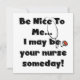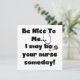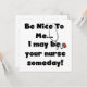 ナース文字のTシャツ、マグカップ、カード、シール、ボタン、バッグ、その他の看護のアパレルやギフトには「私に優しくしなさい…私はいつか貴方のナースかもしれない!」と聴診器や文字を付け読て。