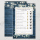 この楽しい性別お披露目パーティー、ティーパーティーゲームは、素朴な青い木の背景にきれいなストリングライトと繊細な水彩グリーンリーフを特徴としています。あなた自身のゲスフー質問でパーソナライズすることができます。Thisisnotme©によって設計