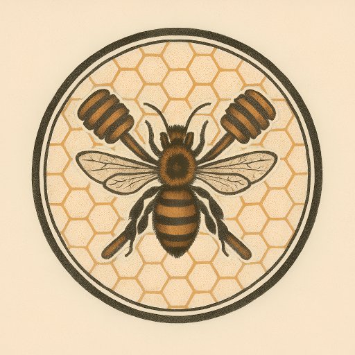 養蜂家、養蜂場、ハチミツ製品の製造者向けの、土臭い素朴なニュートラルなハチミツの巣のロゴの名刺。イラストのハチとハチミツのディッパーが白い背景に描かれている。ニュートラルで素朴。お客様の会社名と、裏面にご自身の名前と連絡先情報をカスタマイズできます。