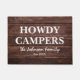 木のプリントの背景、単語の"やあキャンピングカー"、確立されるあなたの姓および年を特色にする素朴な国の玄関マット。