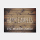 rversのためのおもしろい、素朴な木製の屋外の装飾のギフト、退職したなカップル、ハイカー、キャンピングカーおよび自然恋人は白で次姓を加えるためのテンプレートのご機嫌な人を読むこの名前入りな木の板の一見の玄関マット、手書きに見ること文字を入れますです。 素朴で、古い納屋木の背景に対して乗ります。 素晴らしい退職のギフト、余りに。 RVか居心地のよい丸太小屋の前に家庭で右があって下さい。
