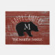 rversのためのかわいく、名前入りで素朴な木製の家の装飾のギフト、退職したな旅行者、ハイカー、キャンピングカー、くままたは動物愛好家およびoutdoorsyタイプは中心のモノグラムのなイニシャルが付いているツキノワグマのシルエットの上の手書きの読むこの名前入りなキャンプの玄関マット、殴り書きされた一見によって曲げられるレタリングのご機嫌な人をです。 お洒落なフォントの底で姓を加えて下さい。 古く素朴な納屋の背景に対して木は伝統的なえんじ色を絵を描きました。 素晴らしい退職のギフト、余りに。 森のRV、避暑用の家または素朴な丸太小屋の前に家庭で右があって下さい。