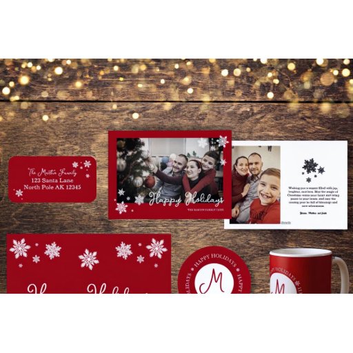 繊細な白い雪の結晶で飾られた、エレガントなハッピー ホリデーズの赤いクリスマス カードで、温かい挨