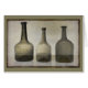 緑と素朴茶色のミュートされたトーンで3つのアンティークボトルを持つ静物芸術。