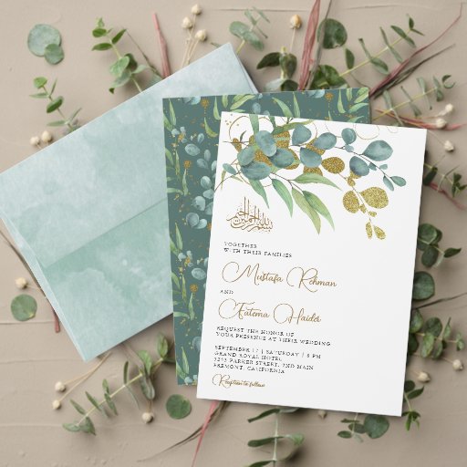 素朴ユーカリ金ゴールド分岐イスラーム結婚ズ 招待状