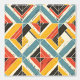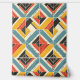 このアートワークプレゼントは、モザイク状に配置された山形と三角形の形状のダイナミックでテクスチャ付きパターンをはっきりした示す。このデザインは鮮やかティール(緑がかった色)、マスタード黄色、赤自然、黒の色のパレットがクリームの背景にセットされている。模様は動揺してかすかな傷と粗い質感で与えす、素朴な擦り切れた外観。幾何学的な配置は動き感と奥行きを生み出し、ラインと対照的な色はっきりしたは、ヴィンテージのテキスタイルや手作りのデザインを連想させるエネルギーと活力の感覚を呼び出す。