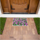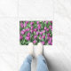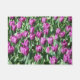 紫色のチューリップの開花の庭の写真のイメージを特徴とする装飾かわいらし的な歓迎の形式。素敵なフローラデザイン春!屋内を使用するか、カバーされた入口領域で使用する。