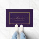 ようこそエレガント紫の背景に金ゴールドスクリプトを持つDoormat。家族の名前または文字でパーソナライズ