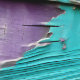 フェイクターコイズブルーとパープルの木に動揺しては欠け効果を繰り返しパターンのスティックと皮を剥く。