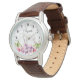 紫とピンクの水色マグノリアホワイトマーブル 腕時計