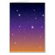 この美しいデザインは、夕焼けから消え去る色の鮮やかな色の夜空に白熱[赤熱]光を放つ大小の星々を描いている。背景は非常に暗い上から真ん中の深い紫まで薄れ、最後に下に金色のオレンジが染まる。この星空のデザイン素晴らしは現状のままだが、独自の文字やイメージを追加して独自のイメージを作ることカスタムもできる。