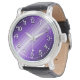 紫色の斜ストライプ方のパターン、明るい紫色の色合い、白い数字が大きいので、一目で時間を見ることができる。この時計来はヴィンテージレザーストラップで – また、スタイルを選択違うできる。