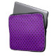 このラップトップスリーブは、紫色の背景に黒い水玉模様のクラシックデザインを備えている。