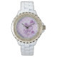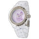 紫色のフローラ旋回デザインを搭載した美しい白Rhinestone市松模様に顔ウォッチ – 画像のライセンスを取得し、グラフィックス工場で著作権を取得