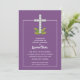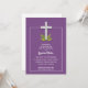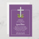 葉緑の上の真珠のような白い十字架と紫の背景に白いテキスト、聖体拝領、洗礼、キリストの洗礼またはその他の特別な宗教行事に最適なデザイン。当店で取り扱いのある商品とMATCH。