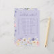お客様の予測をよくはしゃぐ引き付けるブライダルシャワーゲーム「Would She Gent」は、手のパステルワイルドフラワー絵を描と、柔らかいラベンダーの背景に繊細なピンクと紫の蝶で美しく囲まれたゲームです。このゲー魅力的ムカードはあなたのイベントにおもしろいを追加するだけでなく、魅力的なテーマを美しく補完し、それはあなたのブライダルシャワー活動に完璧な追加する。