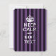 トレンディー紫パーソナライズされたのKeep Calm and Carry Onストライプスタイルことわざをギフトにカスタムデコール。またユーモアのあるはお洒落、2行の編集可能な文字でクリエイティブの単語を試してみる。結果には必ずCAPITAL文字を使用し最高のてください。刺繍デザインは幅広い色の選択肢で人気がある利用可能。「このデザイ頼ザ」リンクを使用し連絡て、お客様の特別なデザインリクエストやカスタマイズのニーズに対する支援を受けることができます。