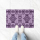 紫色とラベンダーのエレガント葉のパタモダンーンを特徴とするドアマット。マッチングパープルのホームデカールは、この店の残りの部分を訪れる。