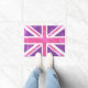 紫色およびピンクの英国国旗、ZazzleのMetroDesignzで利用できるロンドンの旗の玄関マット、ロンドン付加的なプロダクト及びギフト。