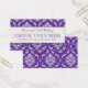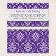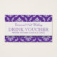 紫と白のダマスクのパーソナライズされた飲み物のチケット結婚は、現金のバーと結婚式のレセプション。このカードを結婚式招待状に含めるか、披露宴で各ゲストに1つのドリンク券を提供する。デザインbyエルククラーク©2012.