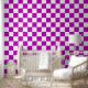 紫色の白チェッ市松模様にクウォールデコール 壁紙