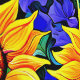 紫色の花と黄色のひまわりのフローラ 壁紙
