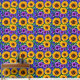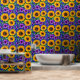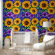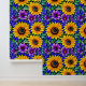 黄色かわいらしと紫の植物花と緑の葉とヒマワリは剥離壁紙にスティック。