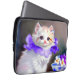 紫色の花首付き白絵画猫 ラップトップスリーブ