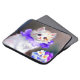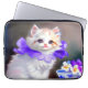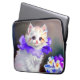 ラップトップスリーブはゴージャスな白い子猫をフィーチャー!ふわふわの子猫は紫色の花輪を付けている。右に白と紫の花の青いボウルが座る。猫好きや美術愛好家の素晴ビクトリアンらしい贈り物!