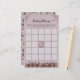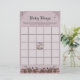 この紫ゴシックの赤ちゃんシャワーロッキングホースベビービンゴは、指示とピンクのバラの下のフローラを備えたBINGOゲーム縁どカードを備えている。背中には、ピンクの詳細を持つ揺れる馬、黒いカラス、クモの巣、小さな黒いこうもりと星と青いバラが描かれた黒いインクの手描き模様が描かれエレガントて、薄紫の紫色の背景に対して。使い方:遊ゲストはBingoカードである。お母さんが贈り物を開く前に、お母さんが受け取る贈り物で考え各ゲストが広場に記入する。彼女が各ギフトを解くと、ゲストはカード上でそのギフトのアイテムを渡る。最初のゲストが5連続で勝つ。