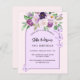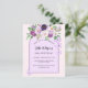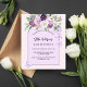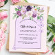 赤面ピンクの背景とアーチフレーム。紫飾と紫の水色の花と蝶名前とパーティー・詳細のパーソナライズおよび追加1枚= 1枚の招待状を印刷したエッジからエッジ