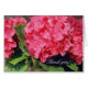 このグリーティングカードのMaeFlowersのオリジナル写真は、ピンクのアジサイとギザギザの縁の春の緑ののクローズアップである。花の花びらの中央のポンポンはデザインを埋め尽くし、その周りに緑の離れとその他の花のポンポンのビットに囲まれている。右下の暗いエリアの明るいピンクの文字は「ありがとう!」と言い、これは黒でカードの内側で繰り返される。すべての文字は、ニーズに合わせて変更または削除できる。対応する封筒が利用可能。