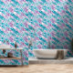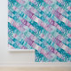 ティール(緑がかった色)、青、ターコイズ、紫の水彩壁紙ストライプ。