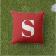 緋色の赤いイニシャルモノグラムの屋外の枕。イニシャル付きの装飾的な屋外独身の枕。素早く簡単にパーソナライズ。